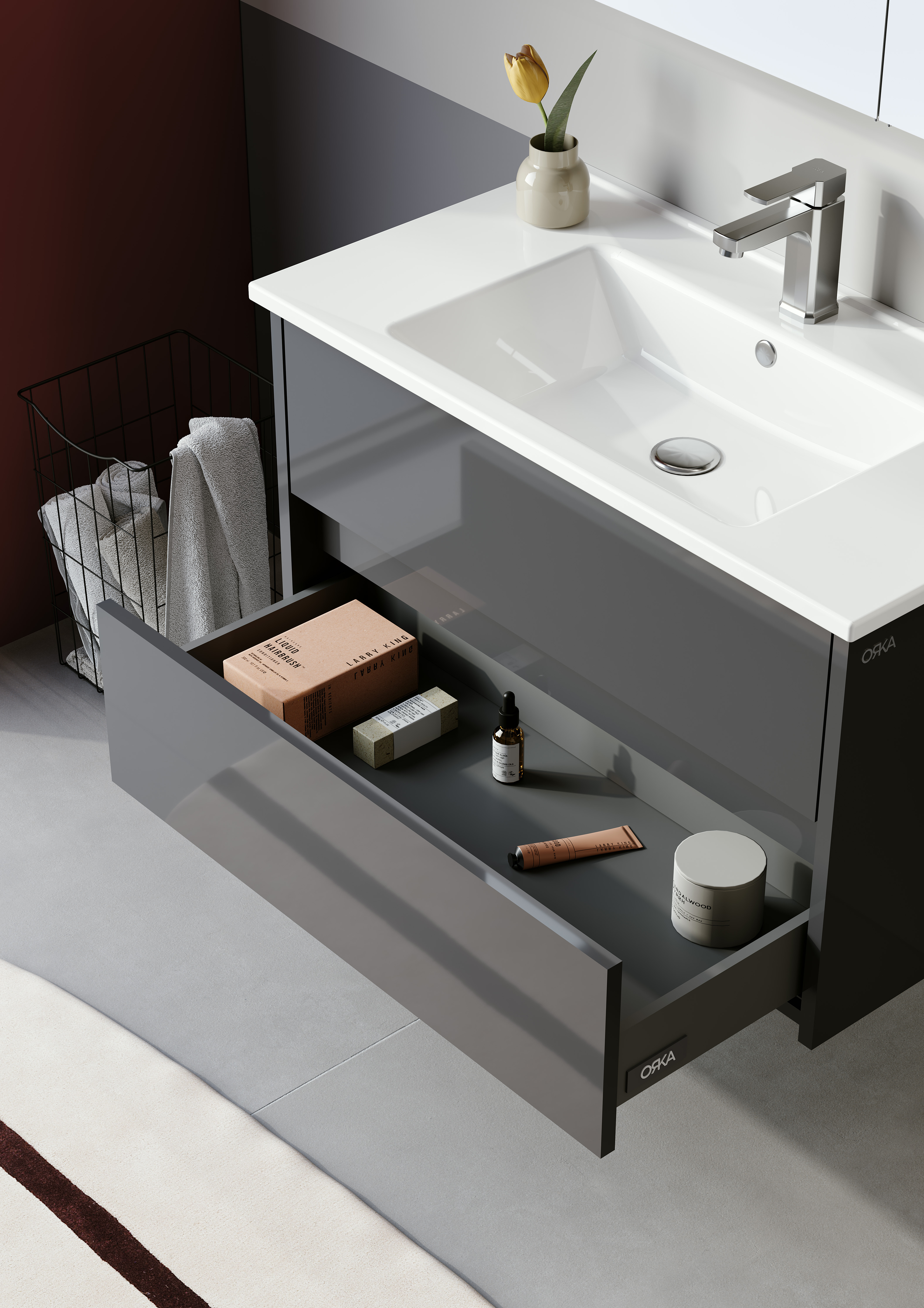 • Body and drawers: Glossy PET MDF